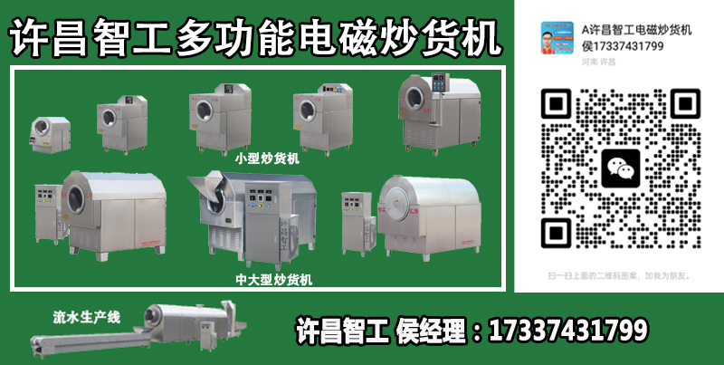 三、操作简便:电磁炒货机是采用智能控制,操作人员根据需要可自由设定,因此安全性高(无炒糊和无火灾现象),炒制品质一致,换班换人都不影响炒制品的品质。